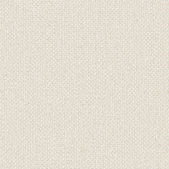 Non-woven wallpaper with vinyl surface, embossed texture evoking fabric, beige shades, semi-gloss.