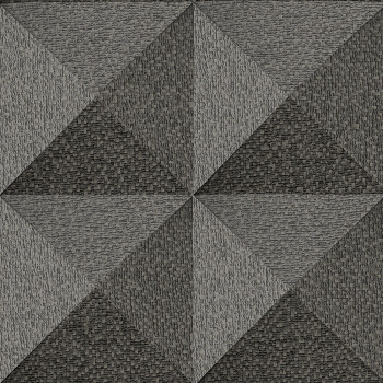 Non-woven wallpaper with vinyl surface, fine embossed texture, shades of brown and black, reflections and shades create a geometric pattern.
