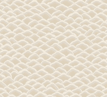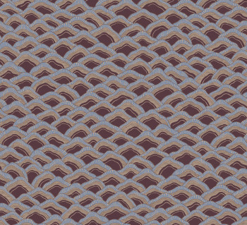 Non-woven wallpaper, subtly embossed, semi-gloss pattern inspired by mountain landscapes, shades of black, gray-beige, brown, gold details.