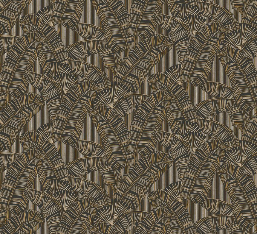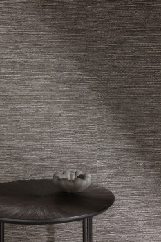 Non-woven wallpaper, imitation of coarser fabric, shades of black, brown, metallic brown-gold accents.