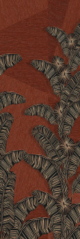 Non-woven wall mural, background evoking coarser textile and lines forming an ethno pattern of leaves, shades of brown.