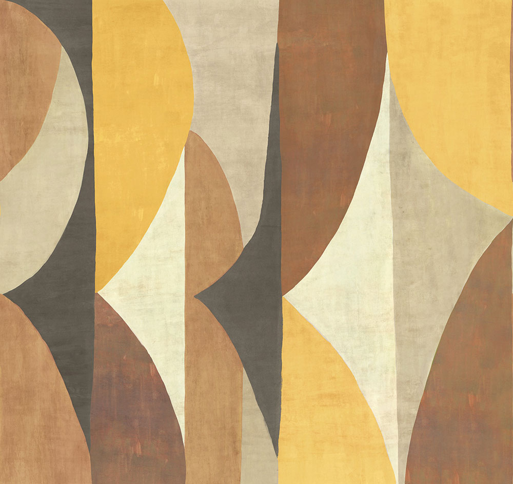 Non-woven wall mural, subtly embossed, graphic patterns, shades of brown, ochre / curry and beige.