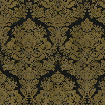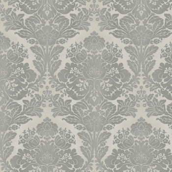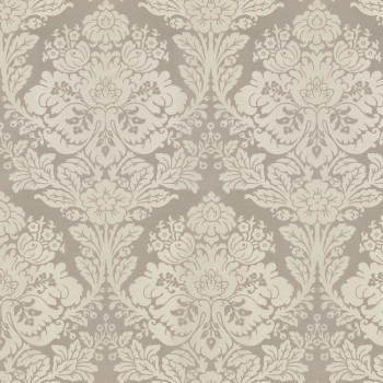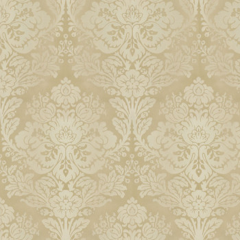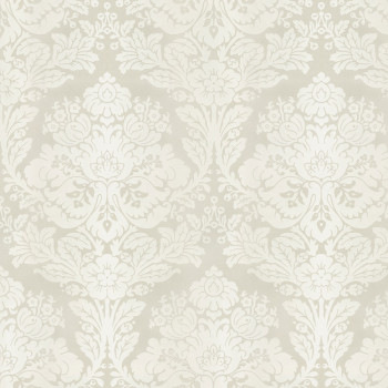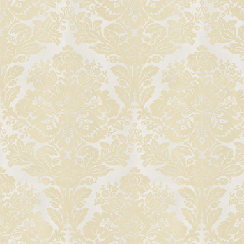 Luxury non-woven wallpaper with vinyl surface, semi-gloss cream shades, baroque damask pattern.