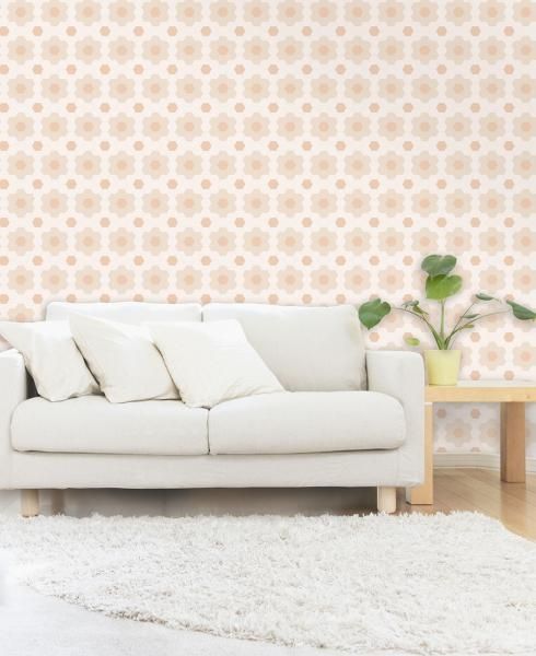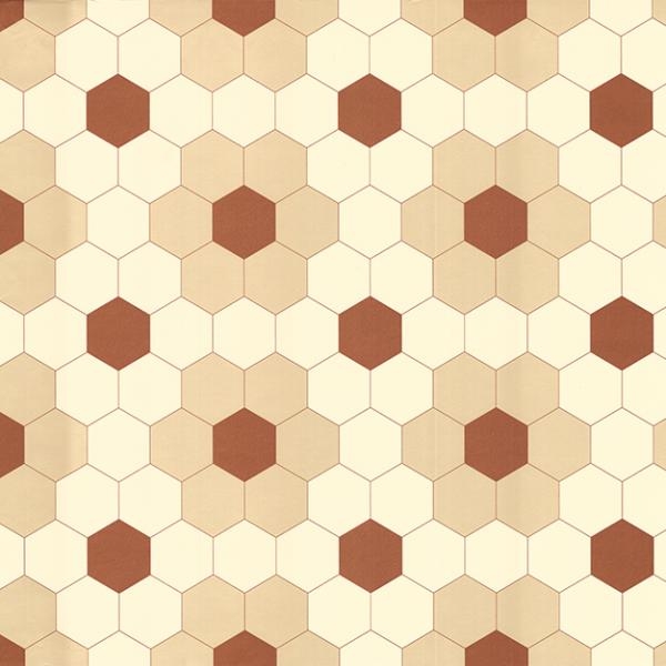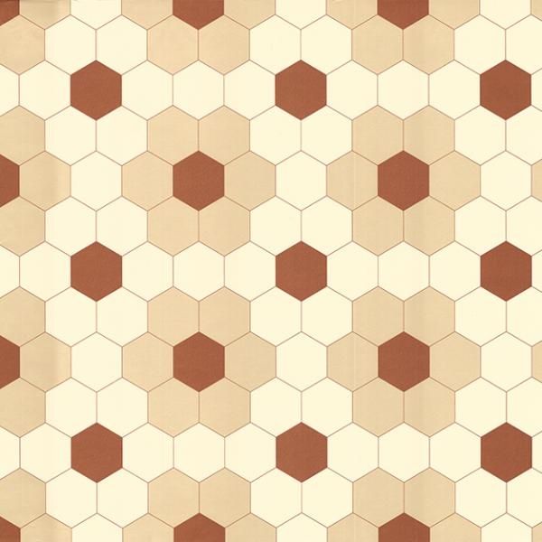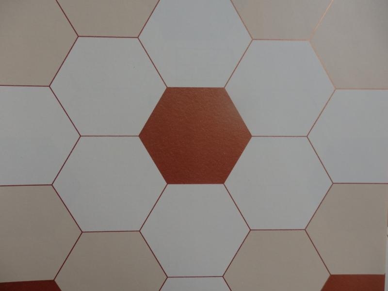Bronze hexagon pattern hemmed with a creamy and beige color on a non- woven wallpaper, Czech production.