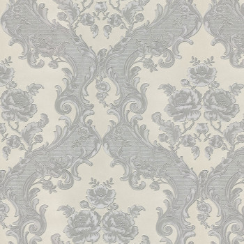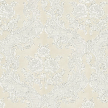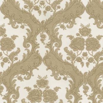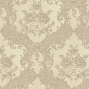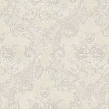 Luxury non-woven wallpaper with vinyl surface, semi-glossy background, baroque pattern in shades of beige.