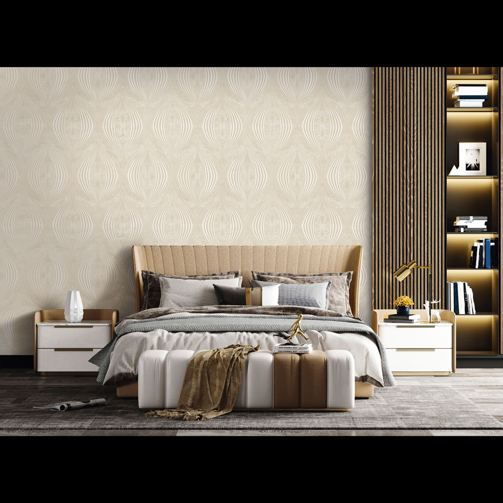 Luxury pearl white non-woven wallpaper with vinyl surface. The shades change according to the light falling on the wallpaper.