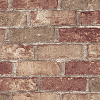 Finely embossed washable vinyl wallpaper in shades of brick, gray-beige and gray-green.