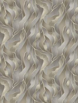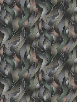 Geometric non-woven wallpaper, shades of grey, brown and green.