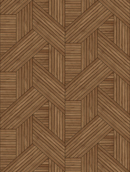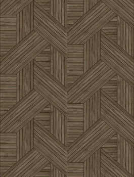 Non-woven wallpaper, imitation of wooden wall paneling / slats, shades of chocolate brown.