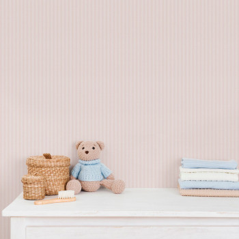 Non-woven wallpaper, pink-white stripes, texture of very fine fabric.