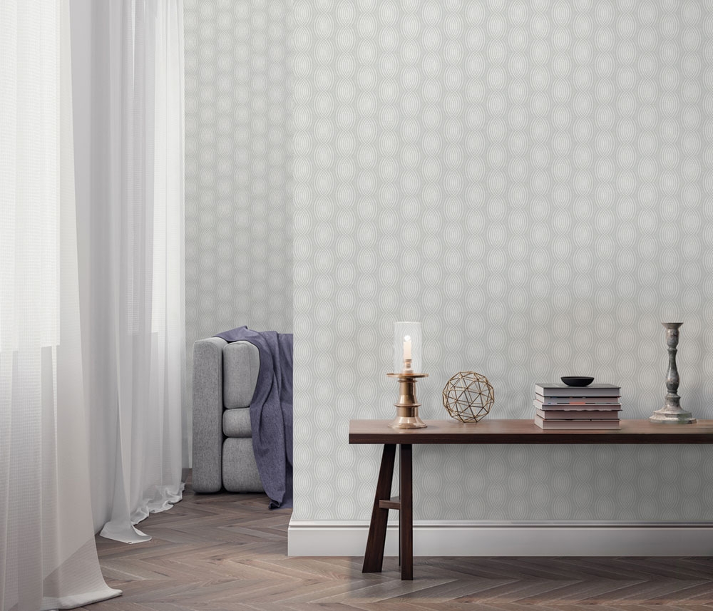 Finely embossed non-woven wallpaper with a geometric pattern.