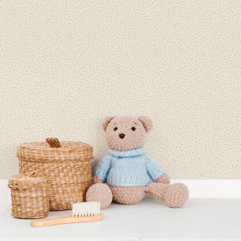 Non-woven wallpaper, motif of drops, spots in shades of beige, texture of very fine fabric.