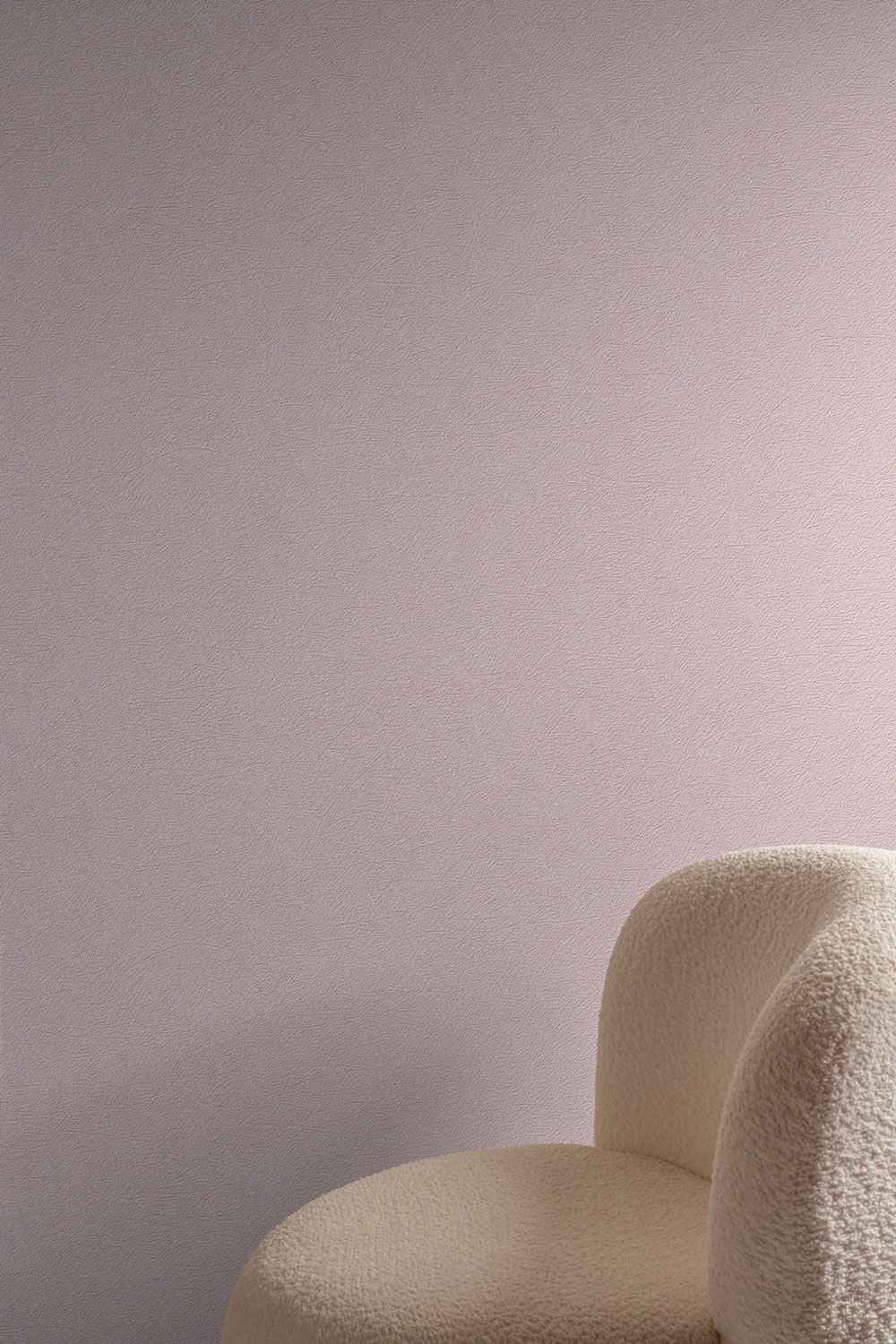 Non-woven wallpaper with vinyl surface, pink semi-gloss with fine fibrous texture.