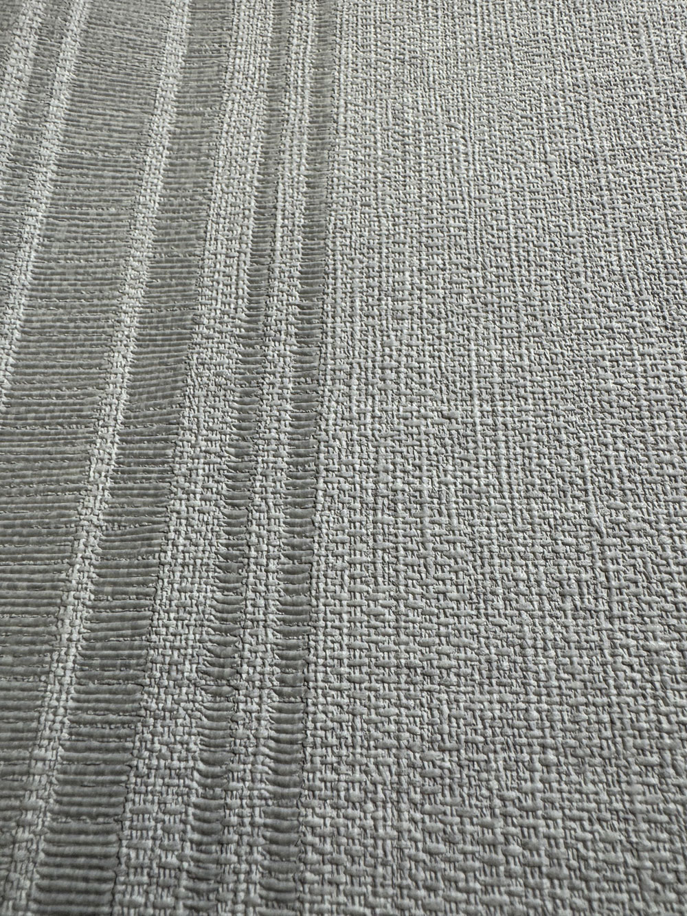 Non-woven wallpaper with vinyl surface, coarser fabric texture with stripes, shades of brown and beige.