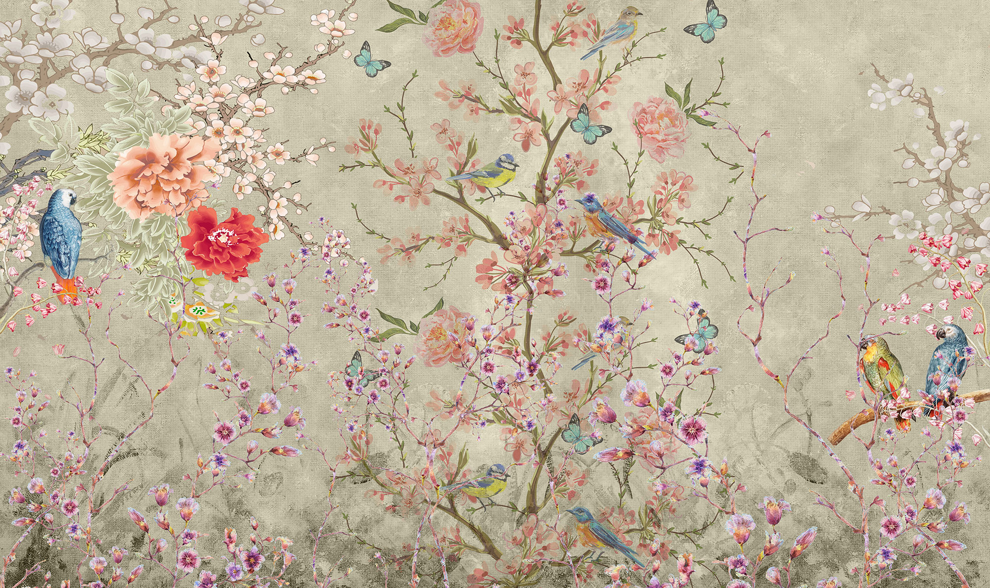 Customized non-woven wall mural, Blossoming branches with birds, 10065, Vavex
