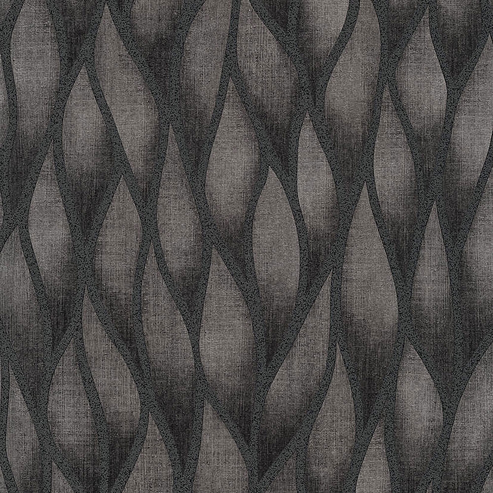 Impressive wavy pattern, anthracite semi-glossy color, pattern outlines with silver glitters. Non-woven wallpaper with a plastic vinyl surface.