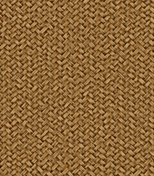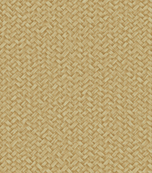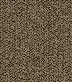 Luxury non-woven wallpaper with vinyl surface, texture evokes a woven mat made of natural material, shades of brown and beige.