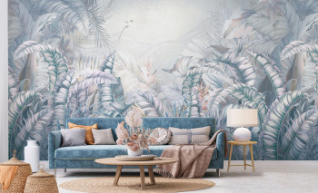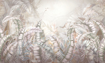 Luxury non-woven wall mural with vinyl surface, coarser texture, leaf motifs.