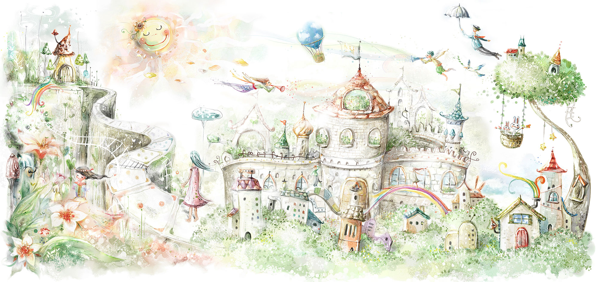 Customized non-woven children's wall mural, Fairytale castle, 10151, Vavex