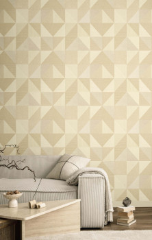Luxury non-woven wallpaper, geometric pattern created with various textures, shades of beige with a subtle semi-gloss finish.