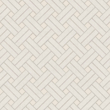 Luxury non-woven wallpaper, geometric interlaced pattern, shades of grey and cream.