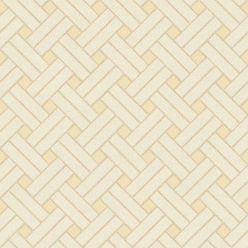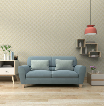 Luxury non-woven wallpaper, geometric interwoven pattern, shades of beige and ochre.