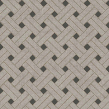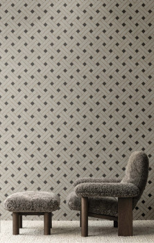 Luxury non-woven wallpaper, geometric interwoven pattern, shades of grey and black.