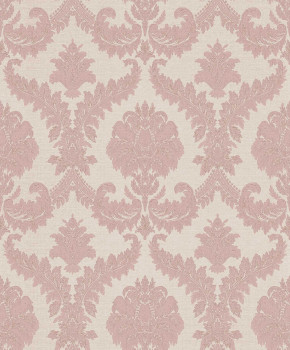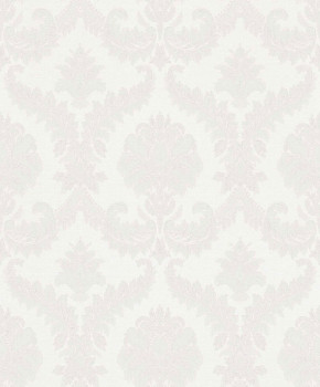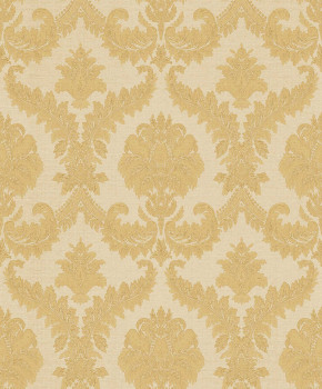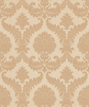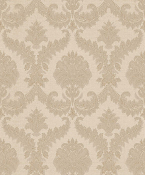 Non-woven wallpaper with vinyl surface, cream shades, baroque damask pattern.