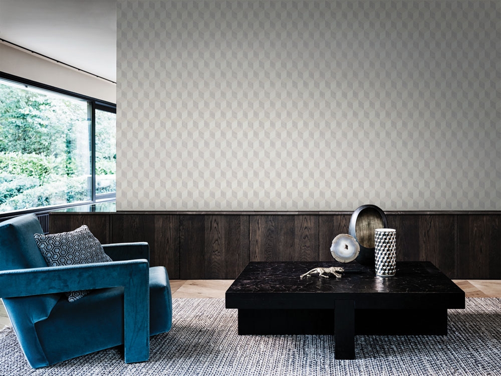 Geometric patterns bring a new dimension into interior. Non-woven wallpaper with a vinyl surface - fine fabric texture. Colors shades and shapes create a spatial effect.