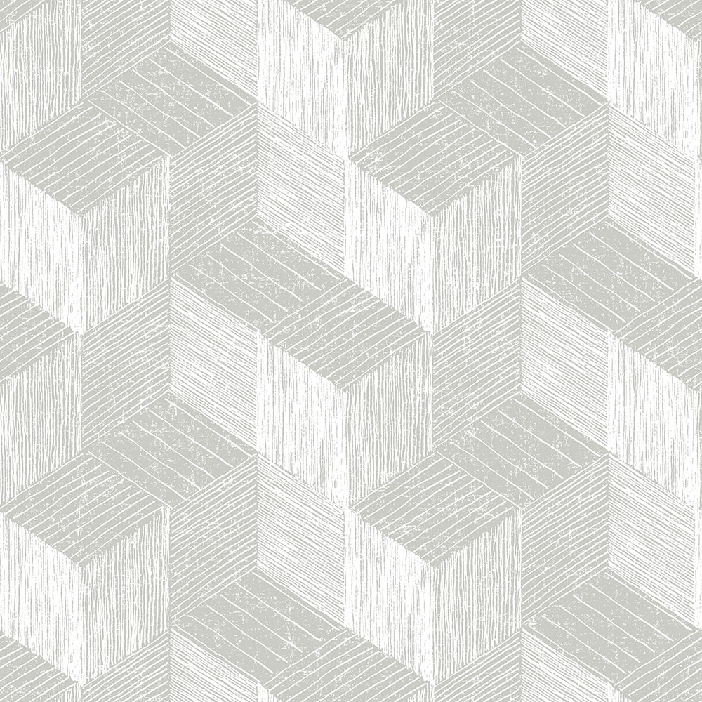 The geometric pattern with a 3D spatial effect will bring a new dimension to the interior. Cubes formed by irregular white and gray-silver lines. Non-woven base, vinyl surface.