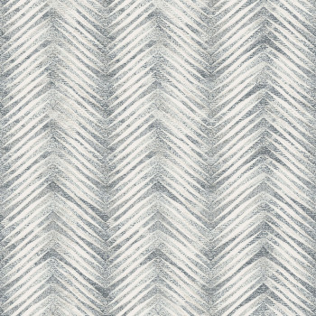 Non-woven wallpaper with an imressive geometric pattern in shades of white, gray and gray-silver.