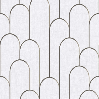 Design and texture of a fine fabric in natural / gray-white shades, brown pattern contours, semi-gloss gold here and there.