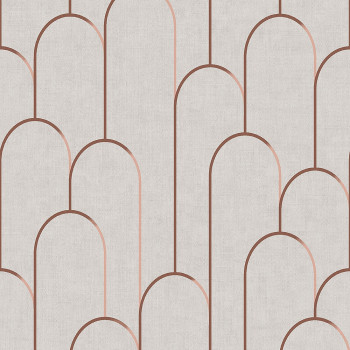 Design and texture of a fine fabric in natural / gray-beige shades, bricky pattern outlines, semi-glossy copper here and there.