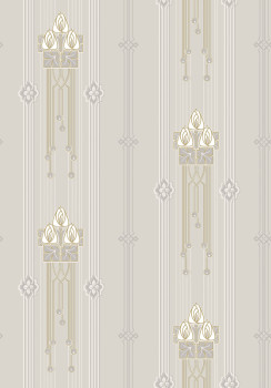 Non-woven wallpaper for the wall, grey background, Art Nouveau pattern with floral medallions and golden lines.
