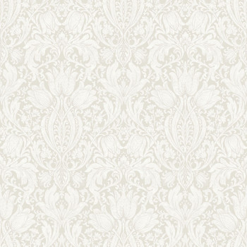 Non-woven wallpaper with a soft pattern of watercolor flowers and leaves in beige tones.