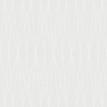 Non-woven wallpaper with a geometric pattern with a retro touch in muted grey tones, with a background pattern resembling fabric.