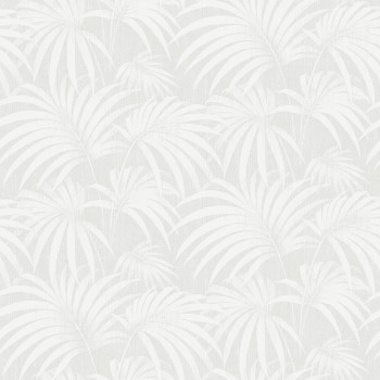 Non-woven wallpaper with a palm leaf pattern in muted grey tones.