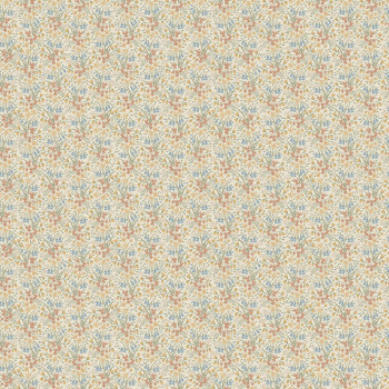 Non-woven wallpaper, cream background, small floral pattern in shades of beige, pink, yellow and blue.