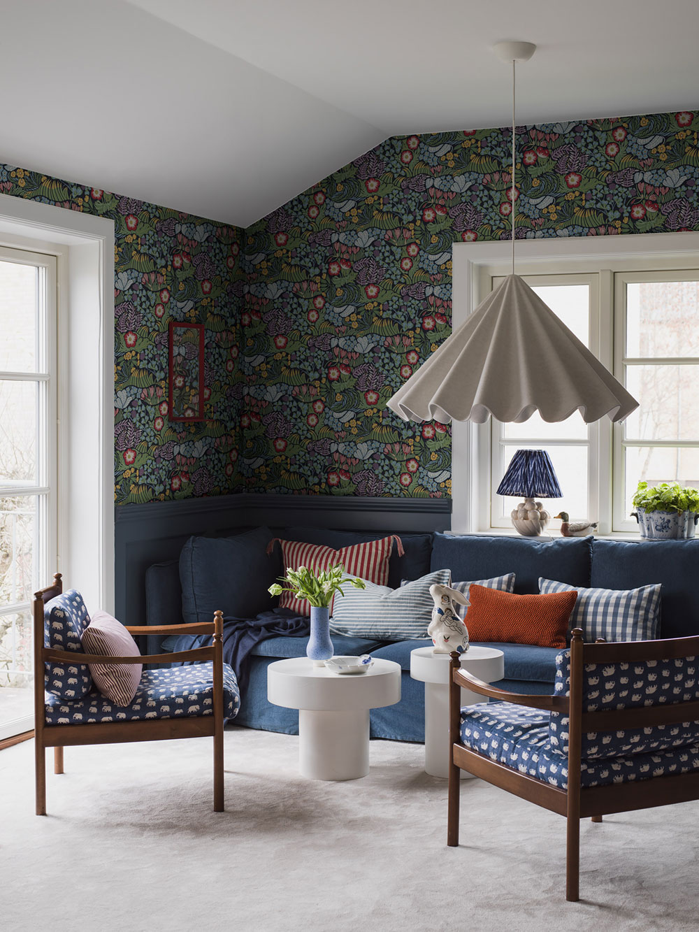 The New Heritage wallpaper collection brings a warm and relaxed atmosphere into your home. Colours and patterns are combined boldly yet thoughtfully – like in the home of an artist who loves variety, or at a grandmother’s house that has evolved with her moods over the years. New Heritage is playful, full of flowers, leaves, animals and subtle geometry. It’s inspired by gardens, parks and Swedish neighbourhoods. Each pattern tells a story and carries the joy of life.