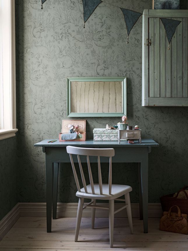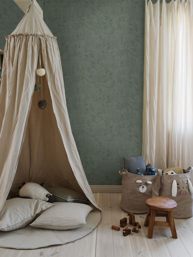 The colour palette is soft and soothing – subtle greens, beiges, blues and browns create a harmonious space that inspires imagination while promoting calm before bedtime. These wallpapers are ideal for nurseries, playrooms and cosy corners – and will grow with your child.