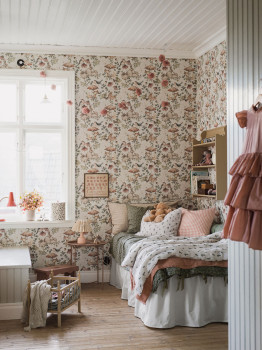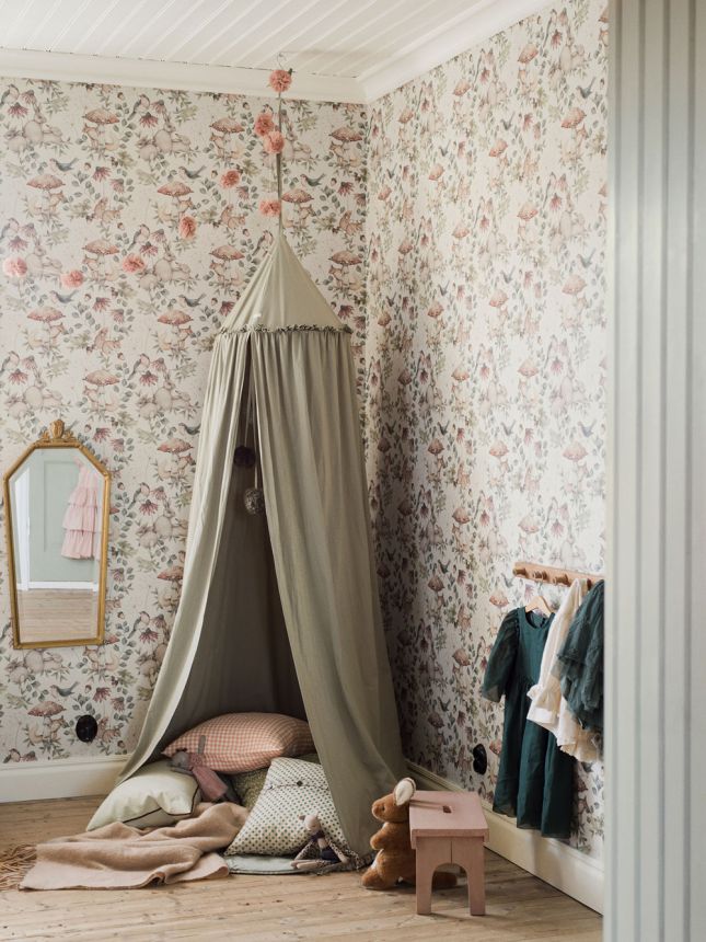 The colour palette is soft and soothing – subtle greens, beiges, blues and browns create a harmonious space that inspires imagination while promoting calm before bedtime. These wallpapers are ideal for nurseries, playrooms and cosy corners – and will grow with your child.