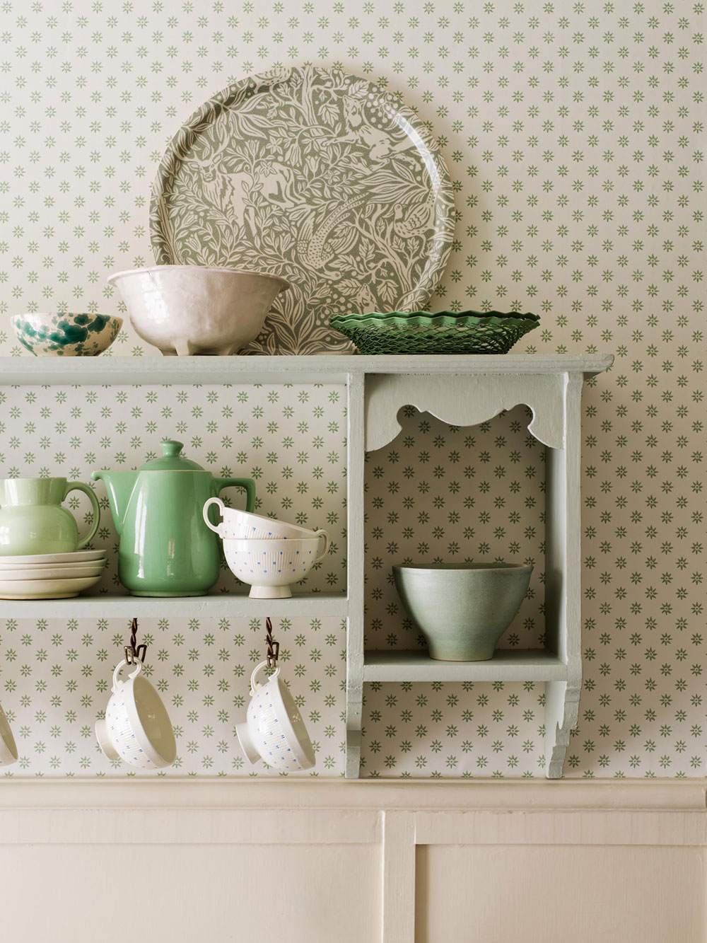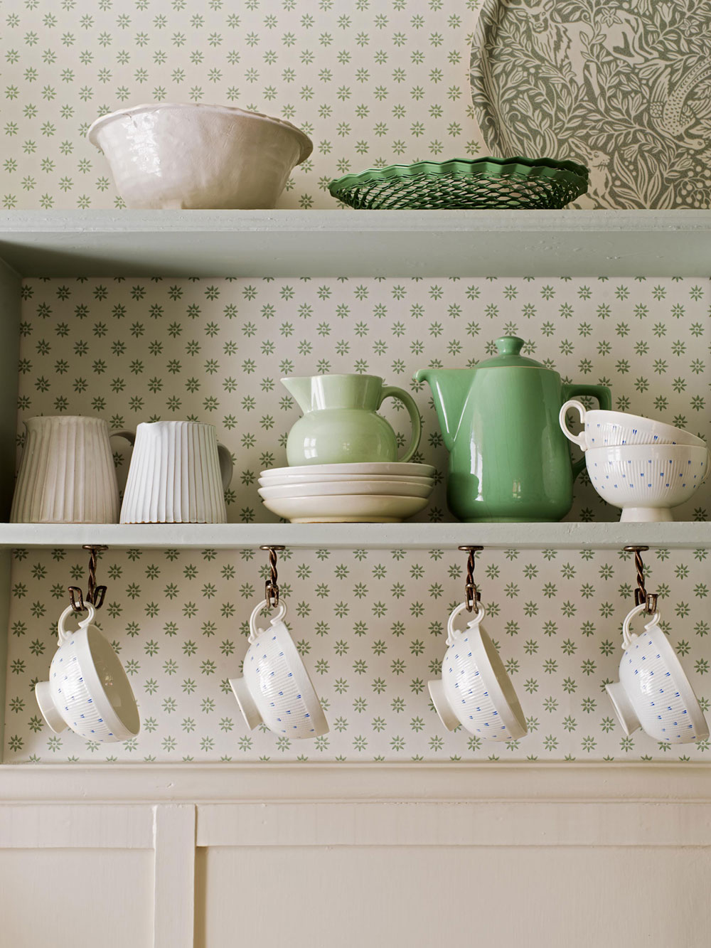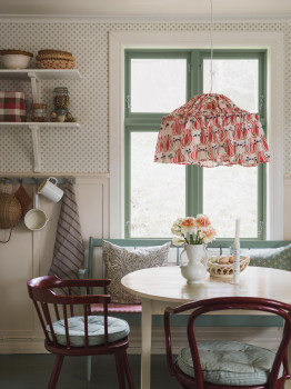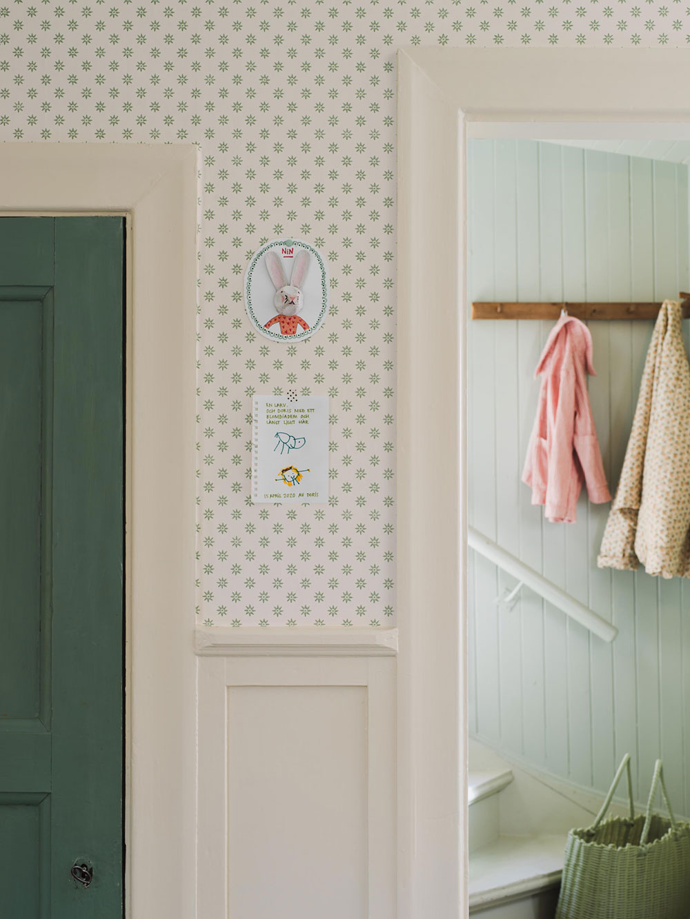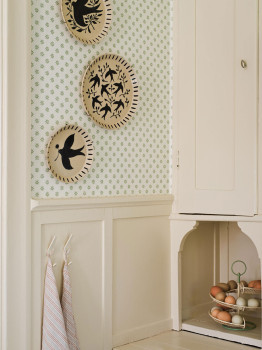 An earthy and joyful collection of wallpapers, Nordic Folk is inspired by Nordic nature and traditions. Floral motifs, stripes, blooming meadows, rolling landscapes with animals, and leafy trees – all of this pays tribute to the rich culture of ancient northern peoples.