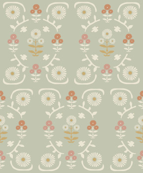 Wallpaper, green, flowers, 5820, Nordic Folk, Borastapeter