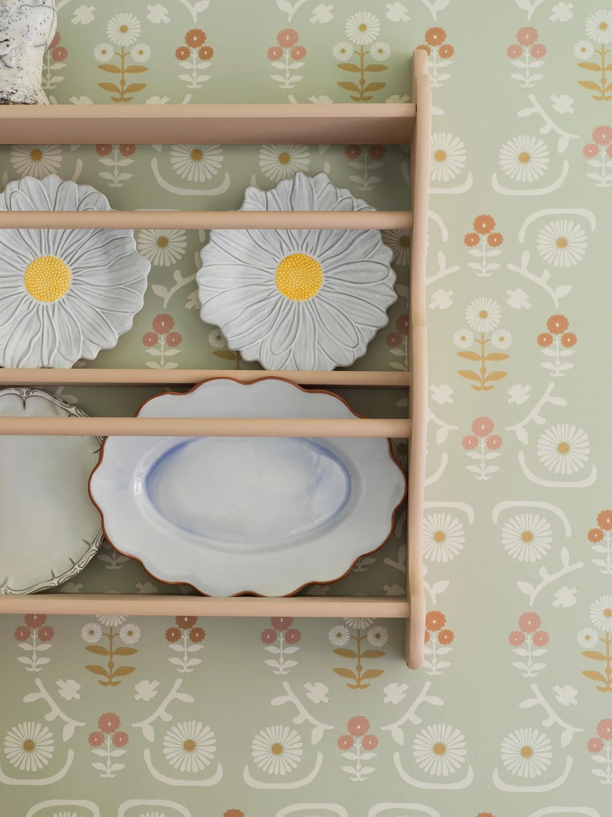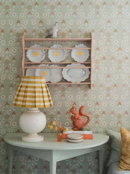 An earthy and joyful collection of wallpapers, Nordic Folk is inspired by Nordic nature and traditions. Floral motifs, stripes, blooming meadows, rolling landscapes with animals, and leafy trees – all of this pays tribute to the rich culture of ancient northern peoples.