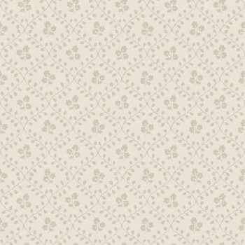Wallpaper, ornamental floral motif inspired by traditional embroidery, shades of beige.