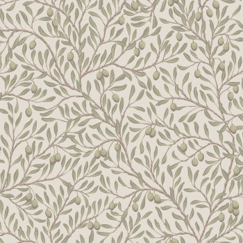 Wallpaper, light greige background, motif of an olive tree with ripe fruits.