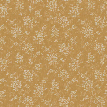 Wallpaper with Hip Rose pattern and vintage elegance, inspired by a floral design from 1920s interiors, in ochre/brown tones.