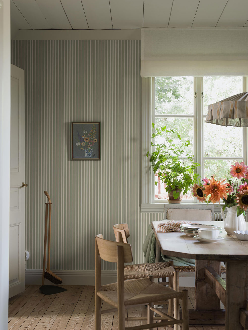 The Österlen collection brings the lightness and serenity of the Swedish summer into your home. You'll find hand-painted florals, subtle stripes and other patterns in soft powdery tones. These wallpapers feel gentle and natural – perfect for a cottage, a girl's room, a hallway or a living room where you want to create a calm, welcoming atmosphere.