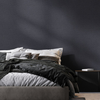 Wallpaper with a dark blue fabric texture and golden glitter.