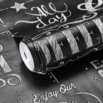 Non-woven, black-white washable wallpaper with a vinyl surface.
